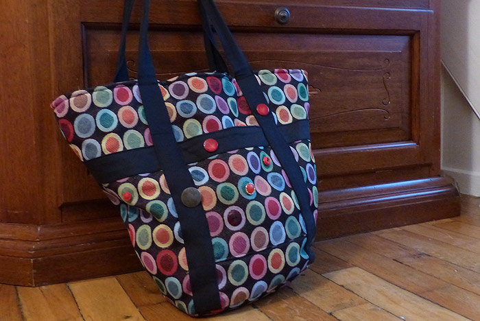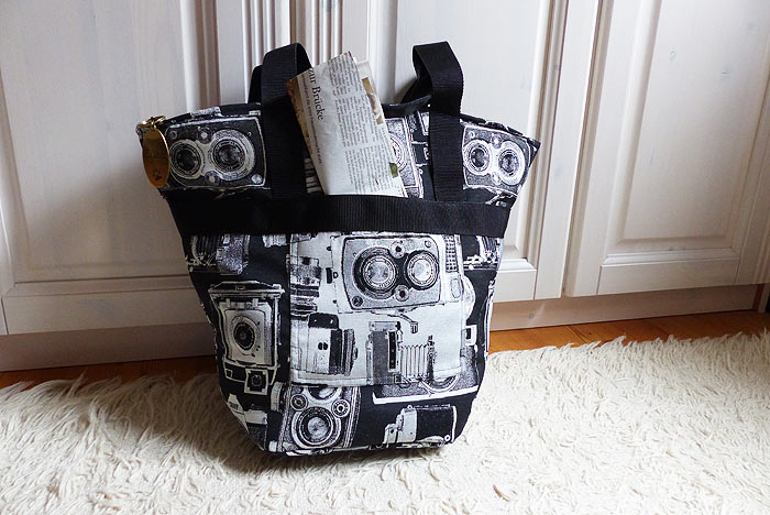 Eine Tasche, wo alle Dinge hineinpassen, die Frau so über den Tag begleiten. Und sie passt prima in den Fahrradkorb! Ein Reißverschluss verhindert, dass bei Holperstrecken der Inhalt hinausfliegt.