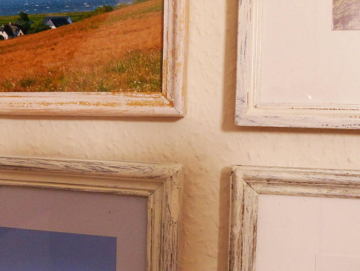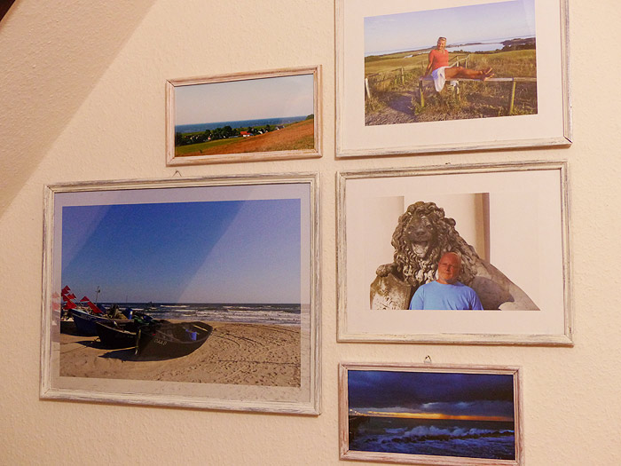 Vorhanden waren alte Bilder, zu denen der Bezug fehlt. So bekamen die Rahmen einen neuen Anstrich, die Glasscheiben wurden gründlich gereinigt und ein passender frischer Hintergrund ersetzt die alten Passepartouts. Schöne Erinnerungsfotos finden darin ihren Platz.